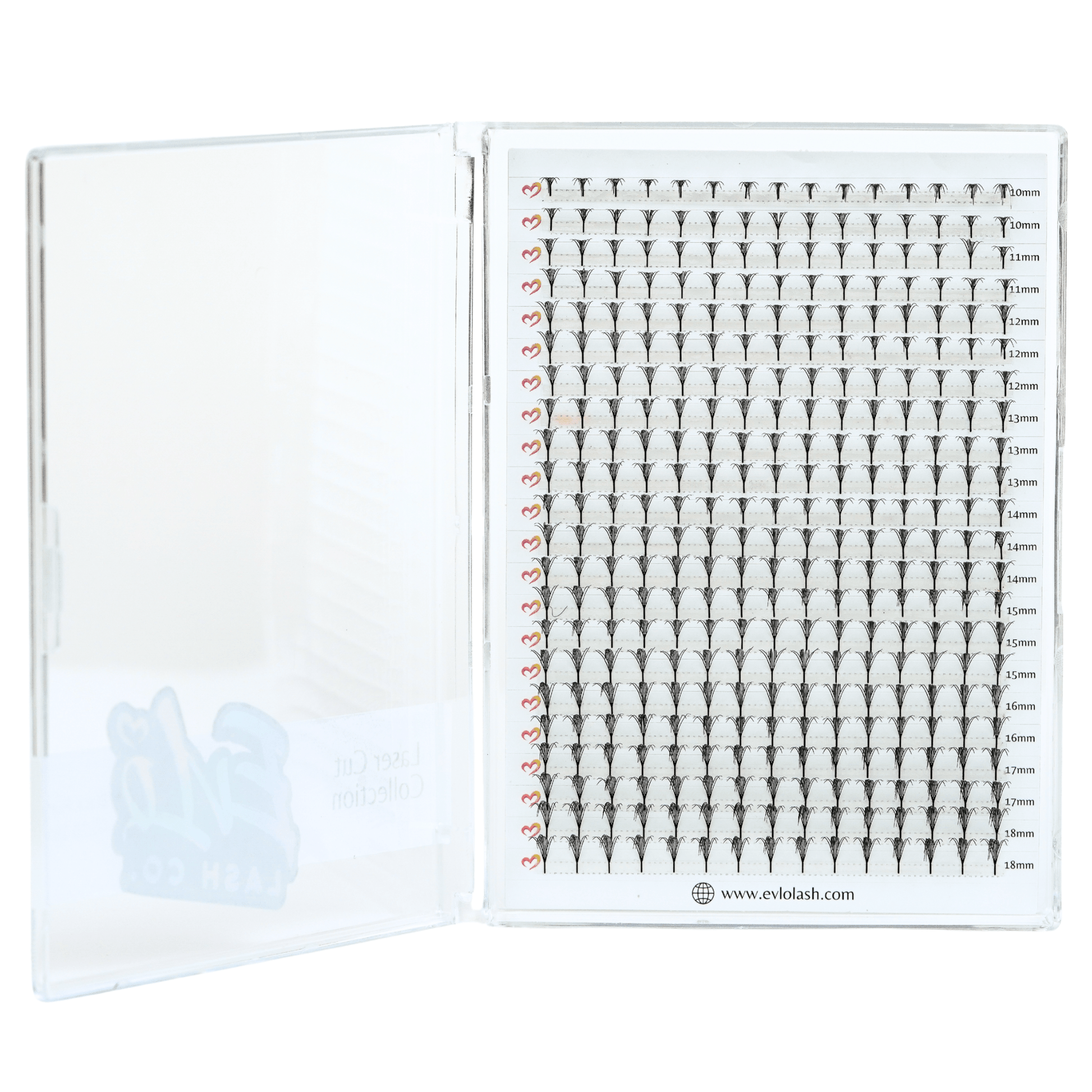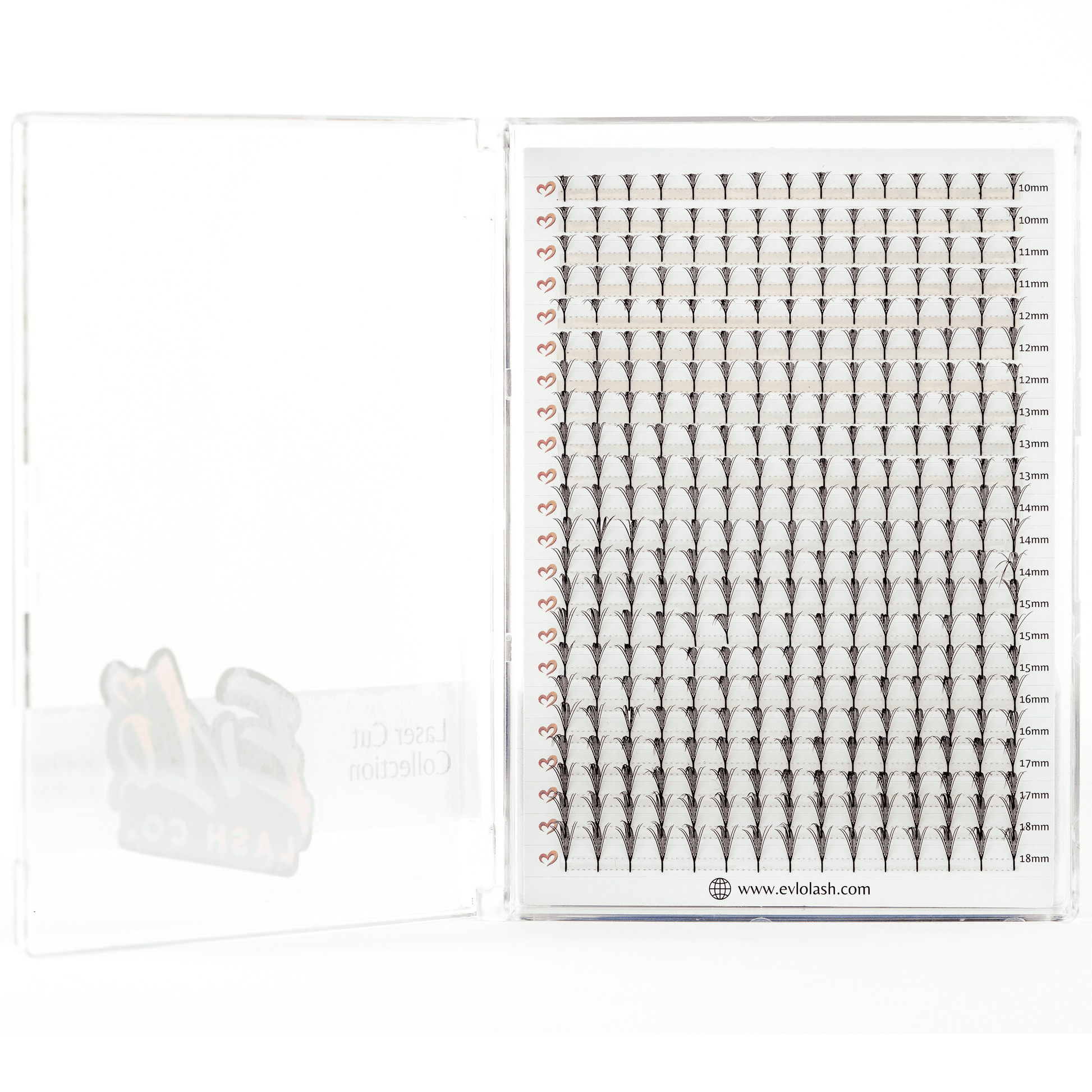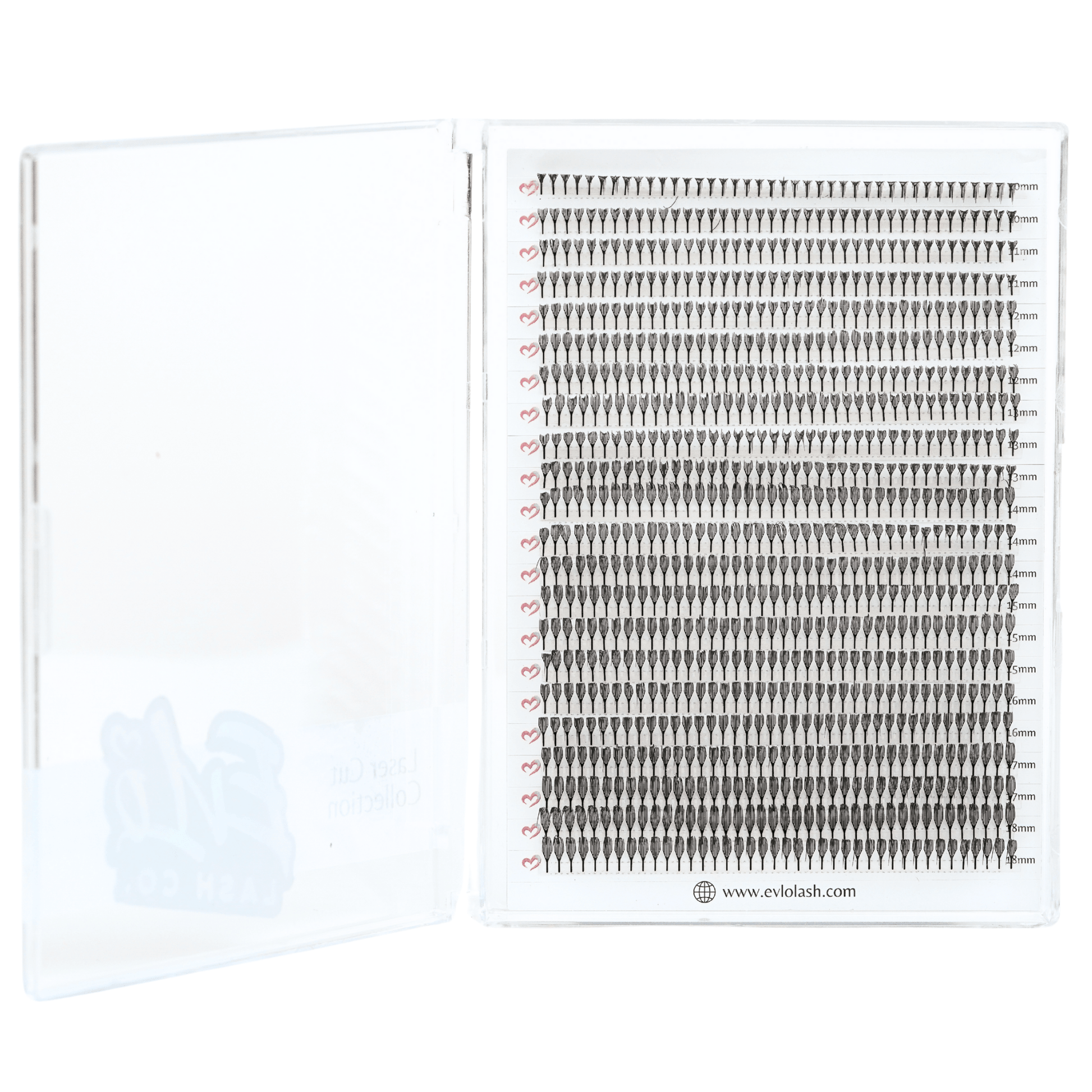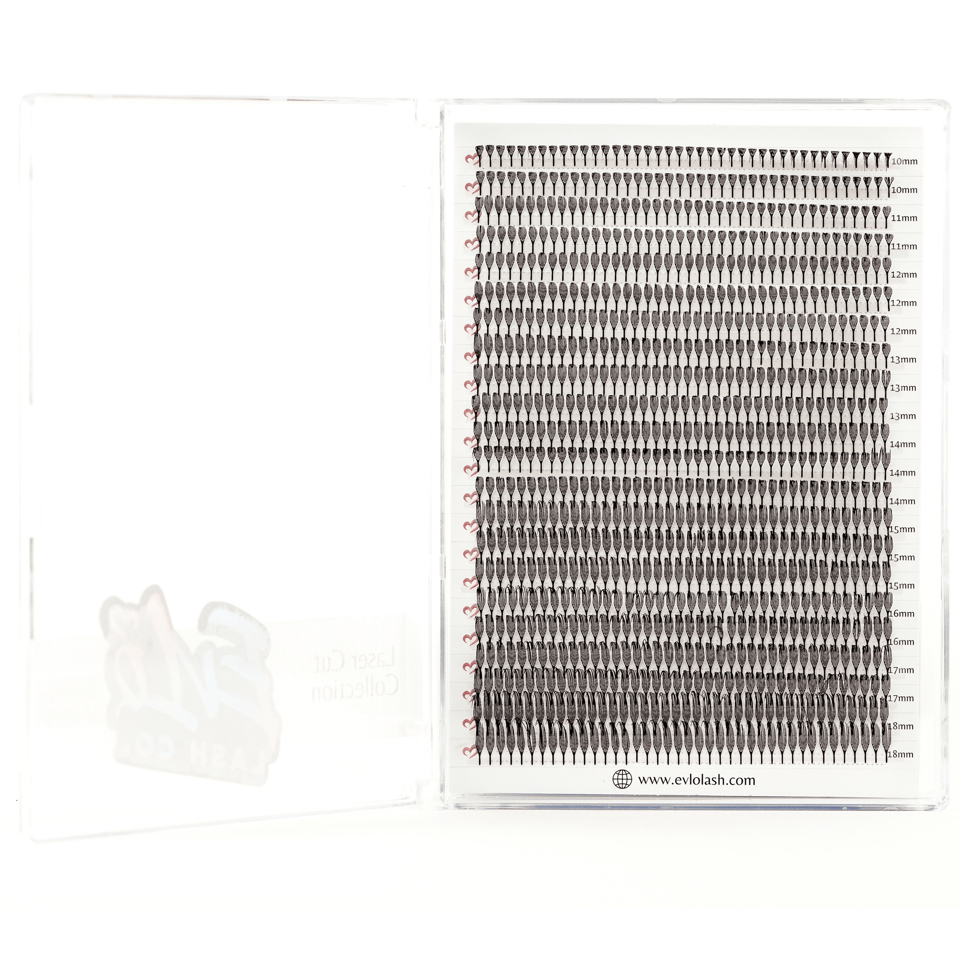 - Plume XL Tray – Soft, airy contours reminiscent of graceful feathers, in mixed lengths from 10–18 mm. 500 fans per tray.